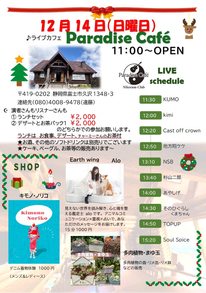 この日はアコースティックスタイルの予定。会場はとても雰囲気のあるログハウス。Paradise cafe(パラダイス カフェ)のんきにやるのでぜひきてくださいね! Free I Can't Take It Anymore Rockin' All Night Against The Storm Soul Power Shake Your Body And Soul I Still Remember You Lylics Index 2025/12/06 静岡ジャパニーズモンスターズ 2025/12/20 富士アニマルネスト