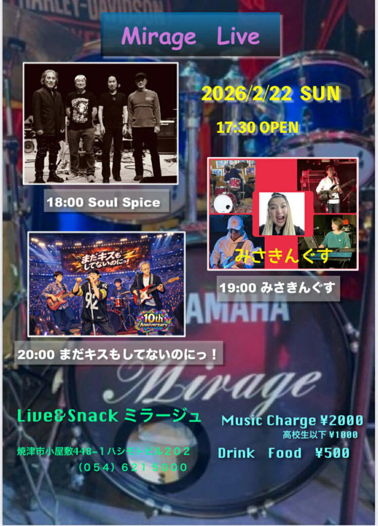 Yaizu Mirage Mirage Liveに参加決定!みなさまお待ちしてます! Soul Spiceはトップバッターとなりました!18時開演です!遅れないようにしてくださいね(・ω・) 〒426-0076 静岡県焼津市小屋敷448−1 Free I Can't Take It Anymore Rockin' All Night Against The Storm Soul Power Shake Your Body And Soul I Still Remember You Lylics Index 2026/1/25 LA SPEED 吉田町 2026/3/28 三島 afterBeat